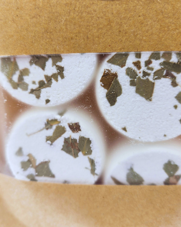 As steam fills your shower, each steamer gently fizzes - releasing a crisp, herbaceous aroma inspired by open meadows and early morning air. A light touch of dried eucalyptus leaf adds visual charm and a natural, earthy essence.