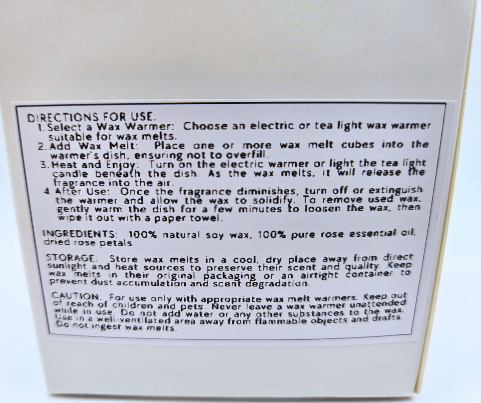 CAUTION: For wax warmer use only. Do not ingest. Keep out of reach of children and pets. Never leave unattended when in use.