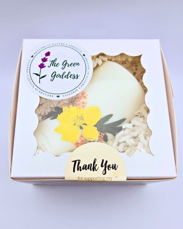 INGREDIENTS: 100% natural soy wax, cotton wick, pressed dried botanicals.