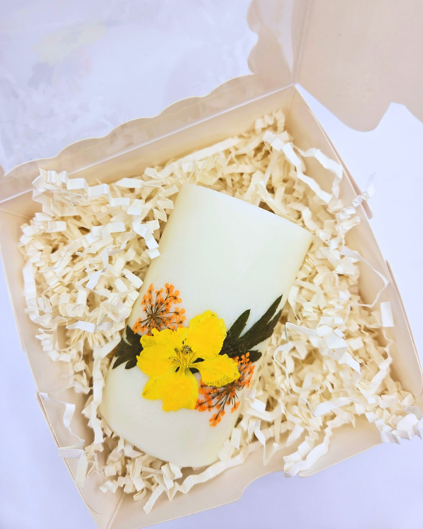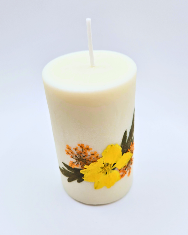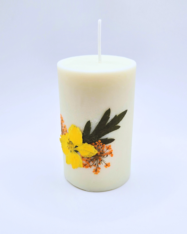 Bring the beauty of the autumn season indoors with our handcrafted Wildwood Reverie Pillar Candles. Each candle is poured with 100% natural soy wax and uniquely adorned with carefully pressed autumn botanicals - leaves, petals, and seasonal accents - captured in wax to preserve nature’s fleeting artistry.