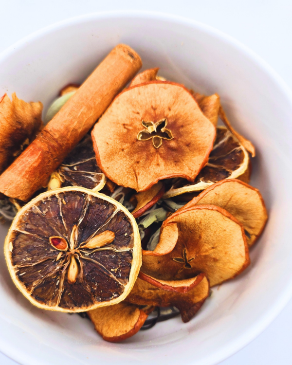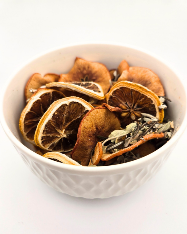 Fill your home with the cozy charm of fall with our Cider and Sage Potpourri - a handcrafted blend of dried apple and lemon slices, cinnamon sticks, sage, and rosemary. Infused with pure sweet orange and clove essential oils, this seasonal mix captures the warmth of spiced cider and the grounding freshness of garden herbs.