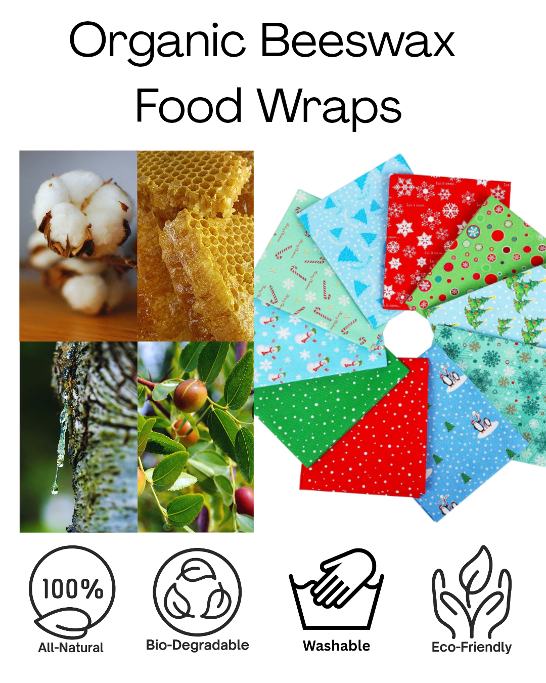 A natural alternative to single-use plastic. Wrap, cover, and preserve your food with our handcrafted beeswax wraps made from 100% premium cotton and pure, organic, sustainably sourced beeswax. Designed in festive winter patterns, these eco-friendly wraps are a beautiful and safer alternative to plastic cling film and bags.