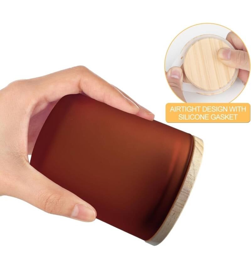 ✔ Elegant Reusable Jar: Poured into a rich amber frosted 7 oz glass jar with a silicone-sealed bamboo lid, perfect for repurposing after use.